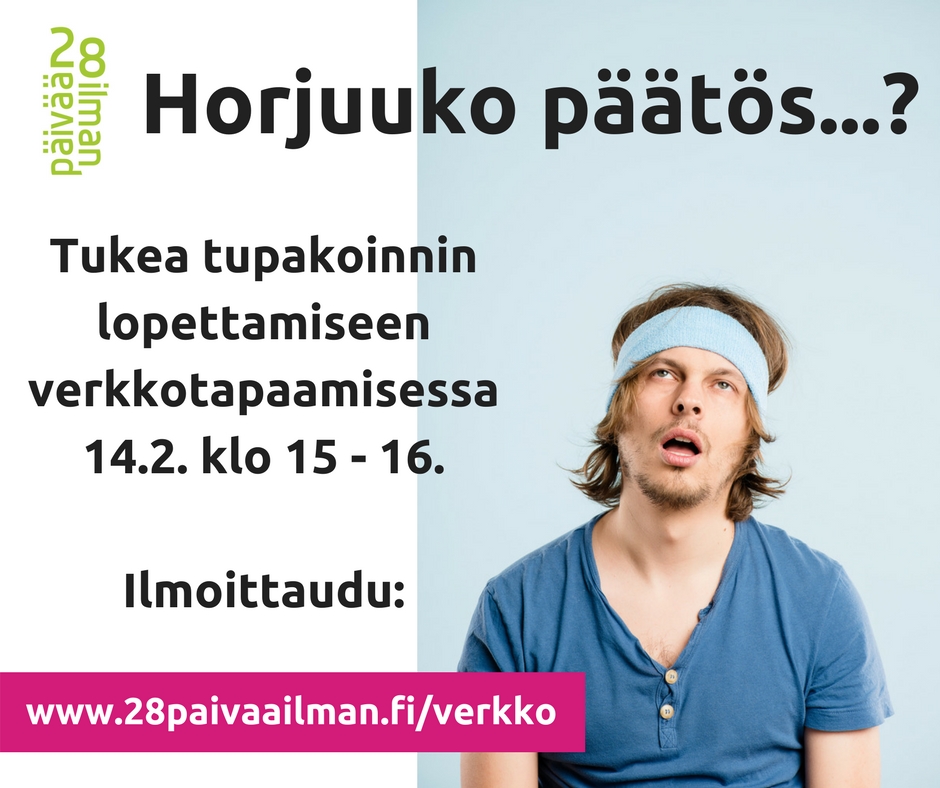 Horjuuko päätös? Tukea tupakoinnin lopettamiseen verkosta 14.2 klo 15-16. Ilmoittaudu: täällä.
